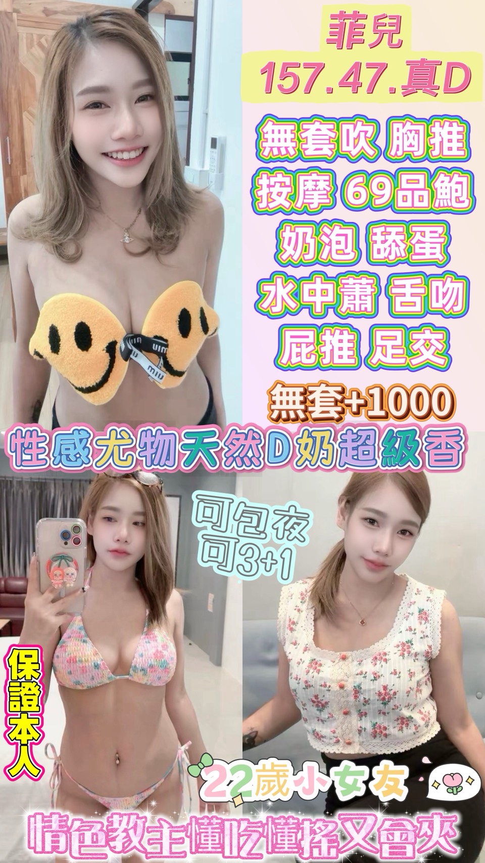 🌸【 全能小野貓:菲兒 】🌸 「157cm 真D級豪乳 ‧ 解鎖無套內射 ‧ 桃園區最強感官盛宴!」 如果您在尋找一位身材曲線完美、玩法又極其大方的女神,菲兒 絕對是您的終極目標!從視覺的 #真D奶 到體感的 #無套內射,她將帶您進入前所未有的極樂領域。 💎 極品誘惑比例:157/47/真D。完美的黃金比例,纖細腰身襯托出傲人的D罩杯,每一寸肌膚都散發著誘人的氣息。 🔥 解禁重磅玩法:主打 #無套內射(+1000) 與 #豪邁吃屌!不僅配合度極高,還支援 #口爆、#顏射 等進階感官刺激。 🚿 全套極致開發: #無套吹 #共浴殘廢澡:最專業的舒壓前戲。 #奶泡 #足交 #屁推:全方位肌膚親密摩擦。 #69品鮑 #舔蛋:細膩的口舌功夫,攻陷您的每一處敏感帶。 🫦 激情互動不設限: #激情舌吻:感受濕潤熱吻的溫度。 加值玩法:支援 #自慰秀、#可3+1、#角色扮演 及 #情趣用品,滿足您所有的私密幻想!