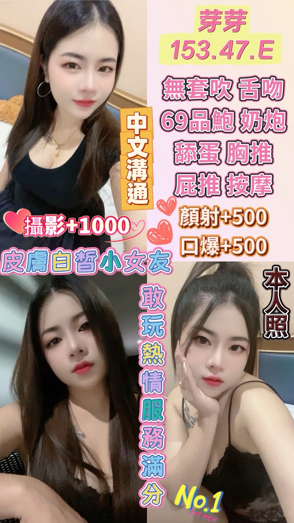 💗 芽芽 – 153/47/E(膚白系甜心) 嬌小可愛的白肌女孩,一眼就讓人心動💞 中文溝通無障礙,互動自然不做作。 她的微笑有魔力,能瞬間融化距離, 每個細節都散發出溫柔與親切。 🌷 芽芽:甜美外貌 × 親近感爆棚 × 純淨系魅力 🌷