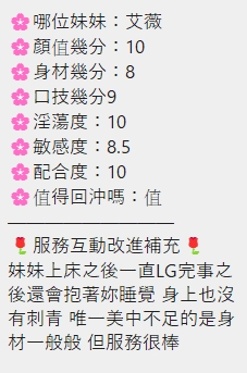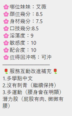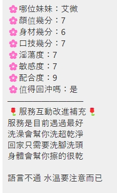 無套吹/共浴殘廢澡/親密KISS.激情舌吻(視個人衛生和妹妹現場感覺.自行開發)品鮑/69/舔蛋蛋/奶炮/按摩/胸推/屁推/免費射後清槍